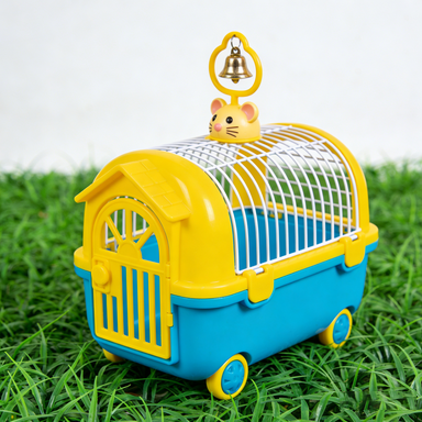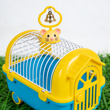 Zoals te zien is op de blauwgele afbeelding van de dierenkooi, speciaal ontworpen voor kleine huisdieren, met schattige muiskopdecoratie en gouden bel. Groothandelsprijs $12-15/eenheid (gebaseerd op MOQ), minimale bestelling 100 eenheden, ondersteuning van functieaanpassing en private labeling.